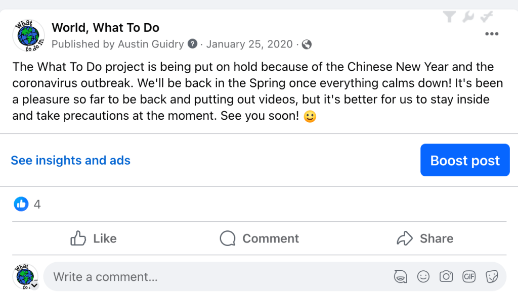 The project failed to sustain itself. Although we managed to put out quite a lot of videos and help quite a lot of people learn about our little corners of China, we were never able to ultimately sustain the momentum of keeping up with all of the various demands of content creation, promotion, website maintenance, and even more, given that this had all been for fun while we had our full-time jobs as teachers, fashion designers, etc.