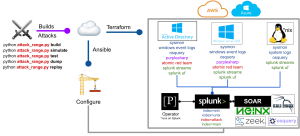 You set up an environment and, in the process, provision resources in Azure / AWS to become a part of the infrastructure. From there, you can generate attack data pertaining to those machines, and you can set up Splunk forwarders on those machines to forward data to whichever machine you’ve got set up to be the search head / “command center”.